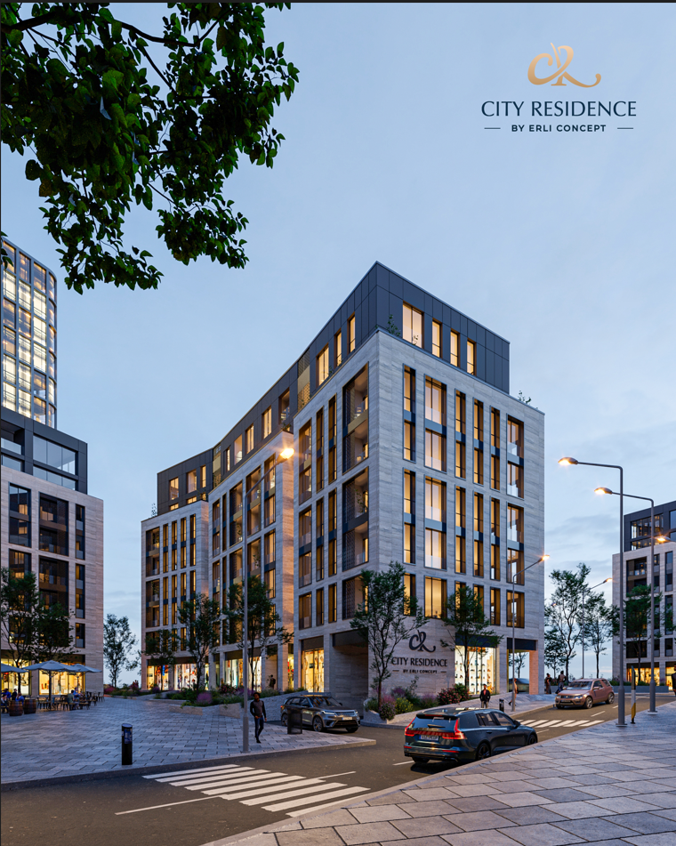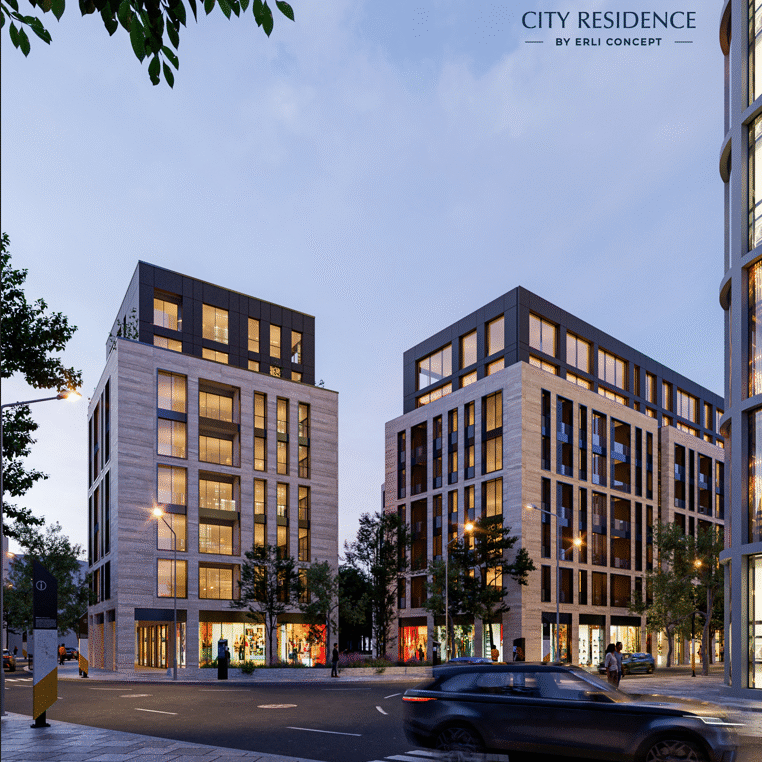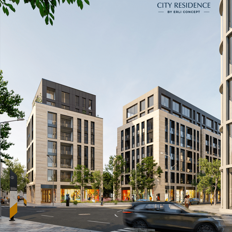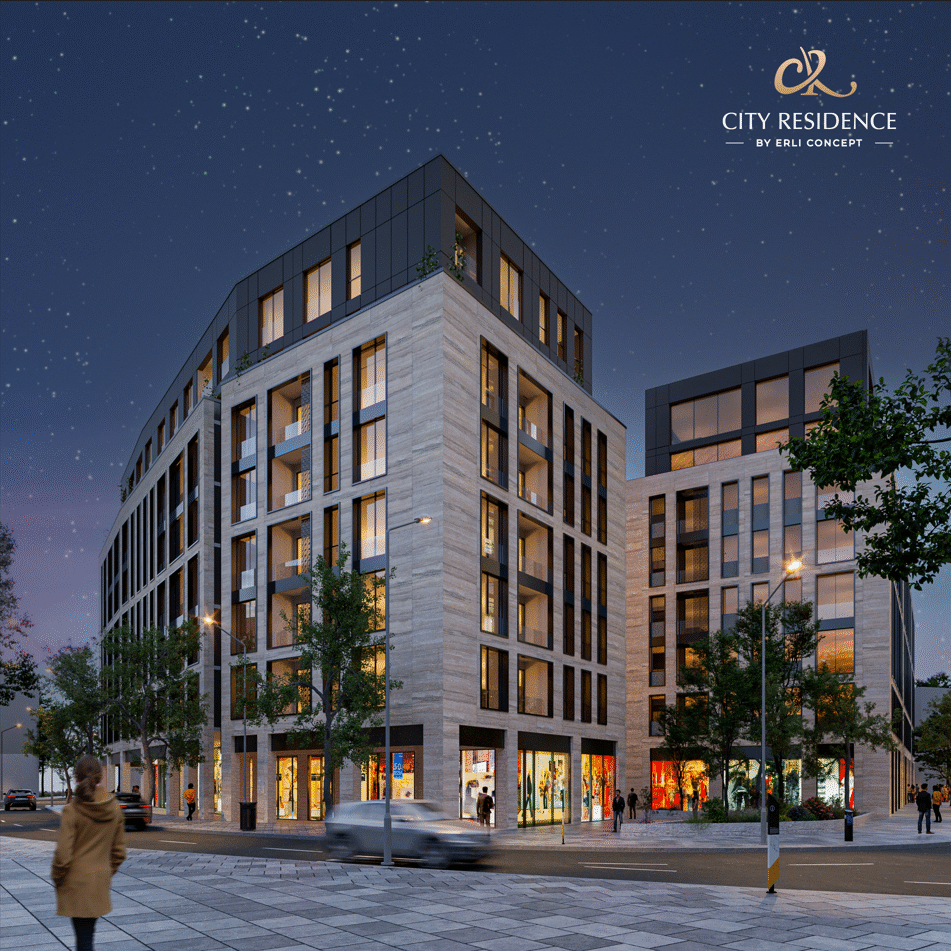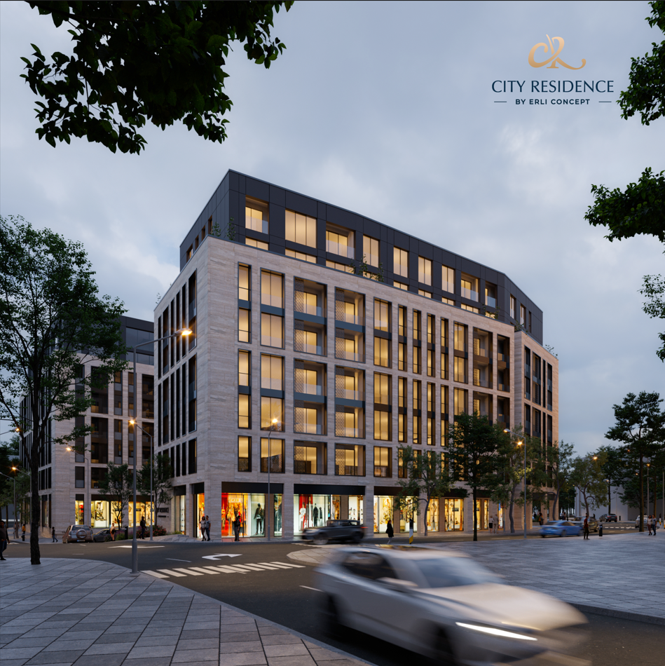 “City Residence” Objekt Banimi dhe Sherbimesh me 6 dhe 8 kate mbi tokë dhe me 2 kate parkim nëntokë. Objekti ka dy hyrje banimi, të dyja me dritë natyrale dhe kanë 4 deri në 5 apartamente për kat.